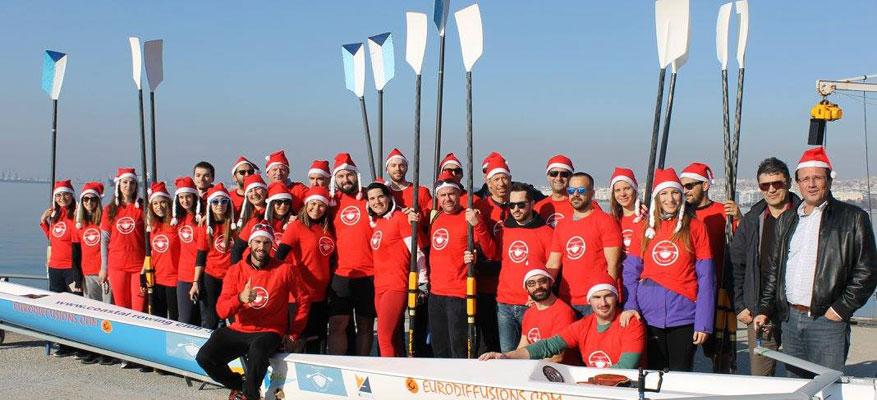 Οι αθλητές και οι αθλήτριες του τμήματος Παράκτιας Κωπηλασίας του Ομίλου μας μεταμορφώθηκαν σε αγιοβασίληδες και αγιοβασιλίτσες το πρωί της περασμένης Κυριακής και έστειλαν τις...κωπηλατικές τους ευχές στην ηλιόλουστη Θεσσαλονίκη και τους εκατοντάδες Θεσσαλονικείς που περπατούσαν εκείνη την ώρα κατά μήκος της Παραλιακής Λεωφόρου, από το λιμάνι μέχρι τις εγκαταστάσεις του ΟΦΘ στη Νέα Παραλία.
