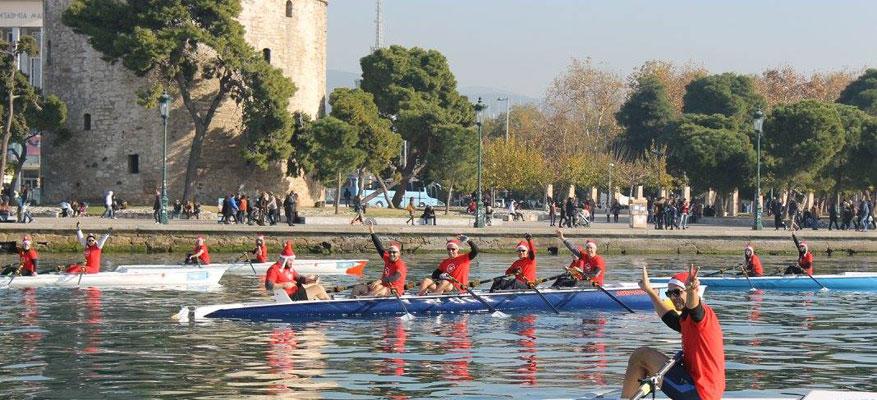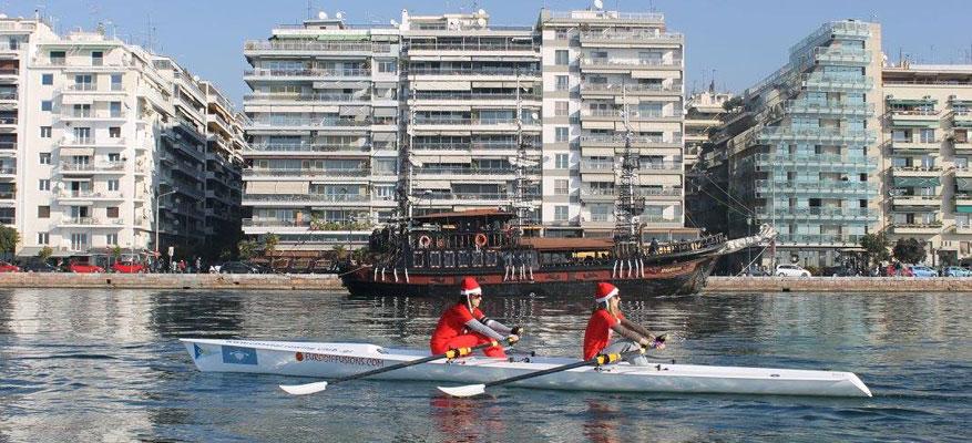 Χωρίς ταράνδους και χιόνι, αλλά με...κουπί και θαλασσινή διάθεση, ο Άγιος Βασίλης ήρθε νωρίτερα φέτος στη Θεσσαλονίκη, χάρη στο Coastal Rowing Club Thessaloniki του ΟΦΘ.